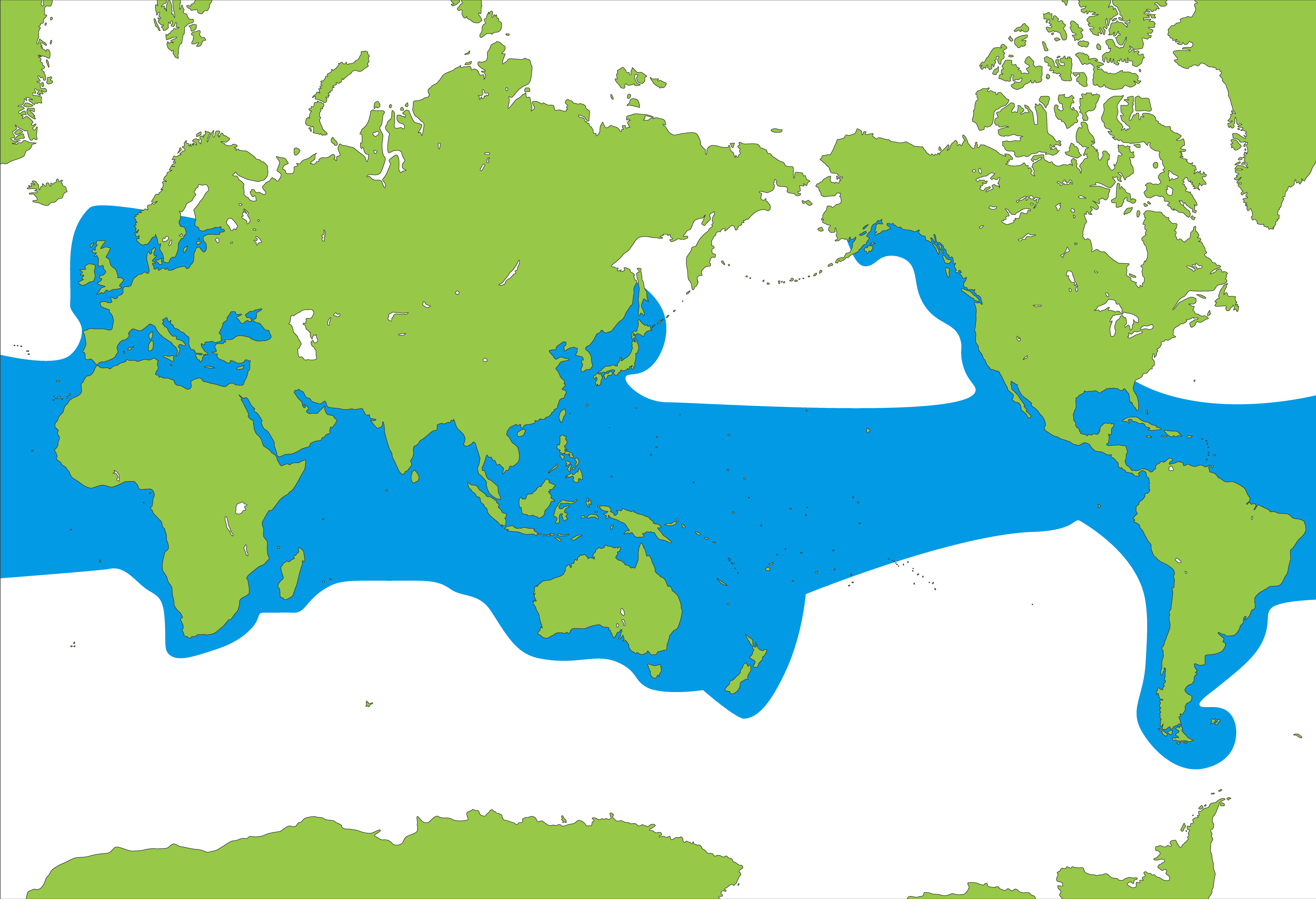 海水温があたたかく、りくにかこまれた海である、地中海(ちちゅうかい)・メキシコ湾(わん)・紅海(こうかい)でも見られる。